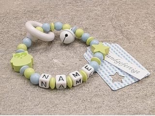Greifring, Beißring, Baby, Greifling mit Namen, Bio Baumwolle, Hasenohren, Geburtsgeschenk, Personalisiert, Anzeige von GeschenkeBude Anzeige des Shops GeschenkeBude GeschenkeBude Aus dem Shop GeschenkeBude. 5 von 5 Sternen (202) ab 6,00 € Bestseller Zu Favoriten hinzufügen Weitere Farben Greifring mit Name, Glöckchen und Stern, verschiedene Farben, Holz Anzeige von Schnullergeschenke Die eingearbeiteten Namensperlen haben abgerundete Ecken, so kann sich das Baby nicht verletzen. Wir fertigen jeden Greifling mit Namen sowie alle Beißringe und Rasseln liebevoll in Handarbeit. Greifling mit Namen: spricht die Sinne eines Babys an. Unser Greifling mit dem Namen des Kindes bietet gleich mehrere Erlebnisse auf einmal. Er ist so gestaltet, dass ihn Dein Kind leicht greifen und festhalten kann. Die runde Form ist für kleine Hände ideal. Dein Kind kann ausprobieren, wie sich