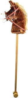 Relaxdays Steckenpferd Kinder, mit Sound, aus Holz & Plüsch, niedliches Stockpferd, Wiehern & Hufgetrappel, 67 cm, braun