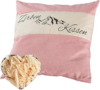 Herbalind Zirbenkissen mit Tiroler Zirbenflocken - 100% Baumwolle ohne Zusatzstoffe, Kopfkissen in Design Rosa kariert als Schlafkissen, Dekokissen, Zierkissen Geschenk Frauen (Rosa, 40 x 40 cm)