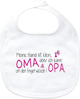 EZYshirt® Meine Hand ist klein aber ich kann Oma & Opa um den Finger wickeln Baby Lätzchen Halstuch
