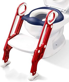 Toilettensitz für Töpfchentraining mit Trittschemel Leiter für Kinder Baby Kleinkind WC-Sitz mit Weichem Kissen Stabile und Rutschfeste Breite Stufen für Mädchen und Jungen (Rot Weiß Blau)