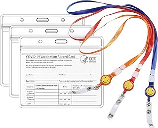 CDC Impfkartenschutz, 10,2 x 7,6 cm, horizontale Impfpassung, Impfkarten-Halter, transparentes Vinyl, Namensschild-Halter mit wasserdichtem wiederverschließbarem Reißverschluss, 3 Sets Umhängebändern