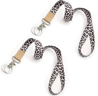Schlüsselbänder für Ausweishalter, 2 x Leoparden-Schlüsselband Schlüssel, Handy und Karten, 6 transparente, strapazierfähige Kartenhalter (3 vertikale Halter + 3 horizontale Halter)