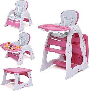 4 in 1 Baby Kinderhochstuhl, Verstellbarer Essstuhl Babystuhl Faltbar, Hochstuhl mit Tablett Sicherheitsgurt (Pink)