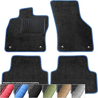 moto-MOLTICO Fußmatten Auto Velours Autoteppiche Schwarz Automatten Set 4-teilig passend für SsangYong Tivoli ab 2015 (Blaue - Ziernähte)
