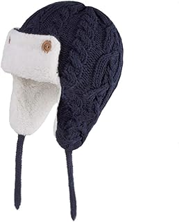 Sunowo Baby Strickmütze Unisex Baby Mütze Unifarbe Strickmütze Baumwolle Warm Wintermütze Kleinkind Earflap Mütze,Navy Blau,L(50-52CM)